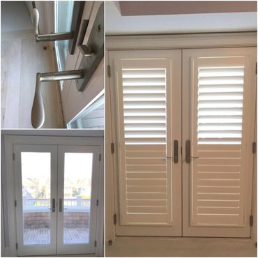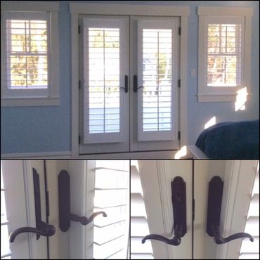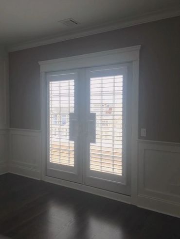 Plantation shutters are a great stylistic choice for French doors, and their light-control and energy efficiency make them a smart choice as well.